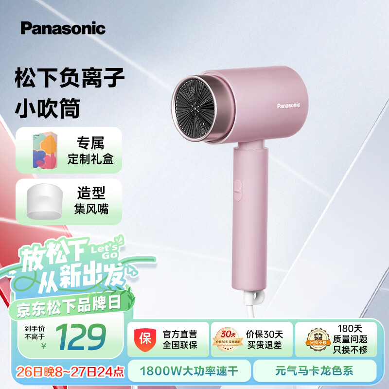 松下(Panasonic)电吹风机大功率高速大风力速干便携送学生宿舍家用负离子护发新年礼物吹风筒EH-WNE5H礼盒豆沙粉价格:129.00元!