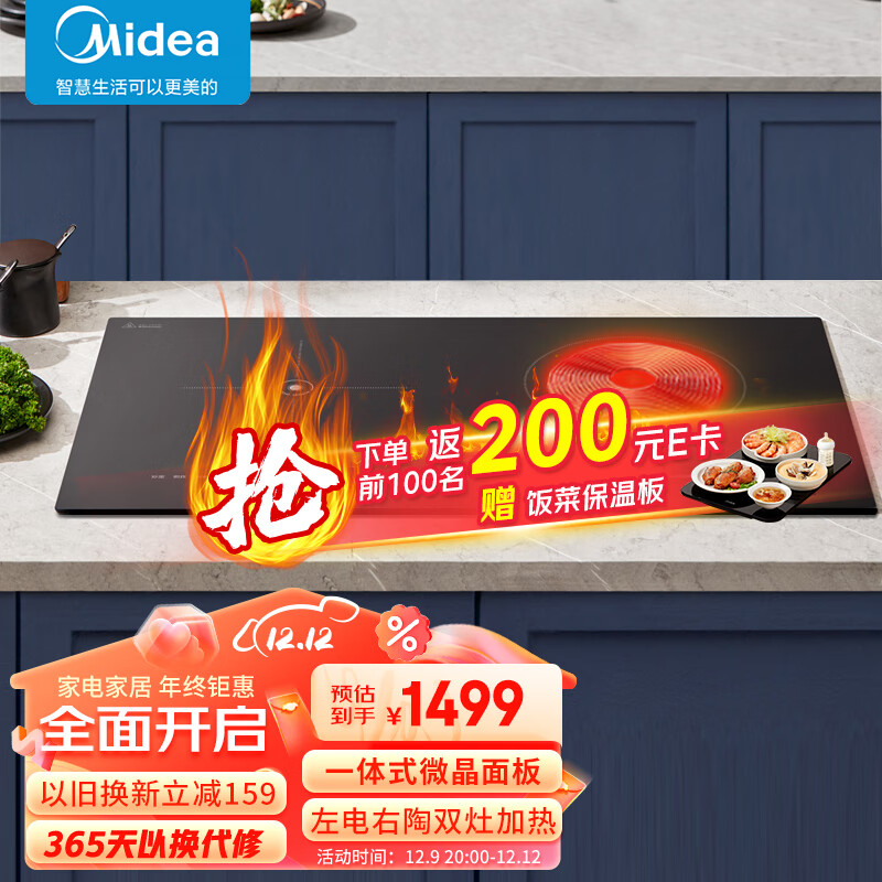 美的(Midea)电磁炉双灶 电磁灶嵌入式家用大功率 电陶炉双边独立定时预约滑触双控 一电一陶不挑锅MC-DZE3551价格:1739.00元!