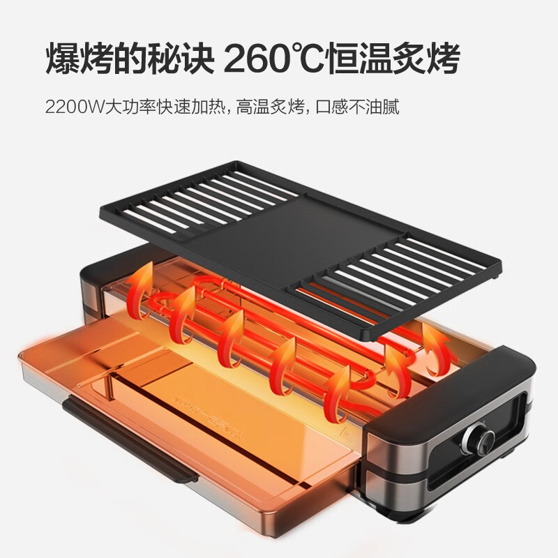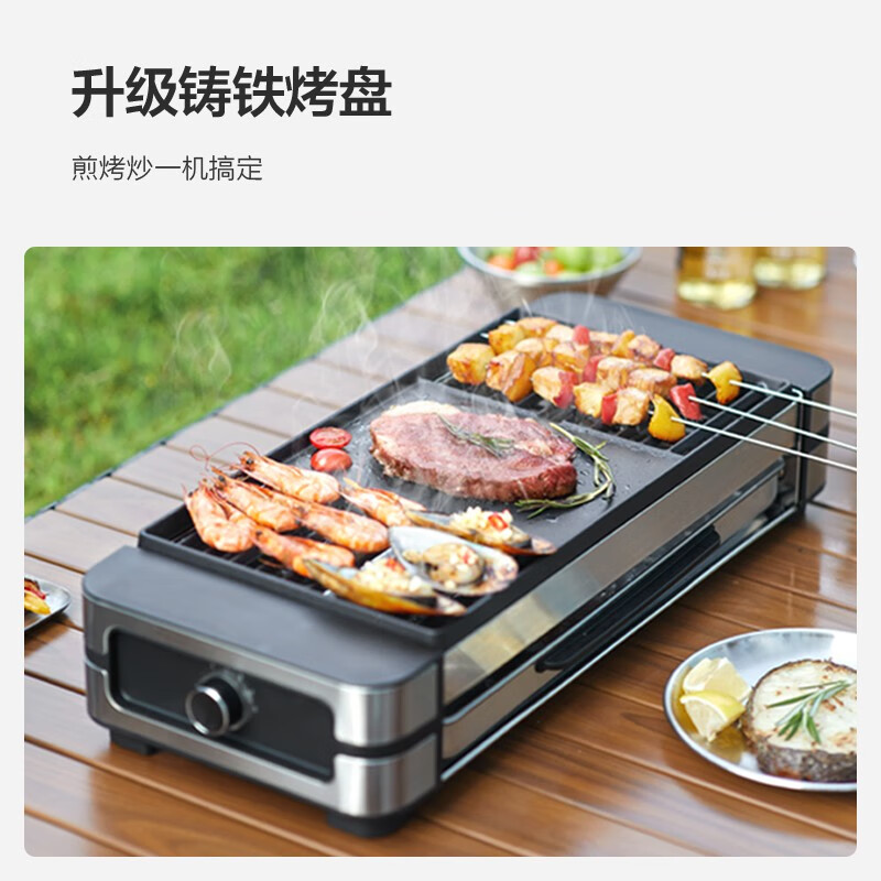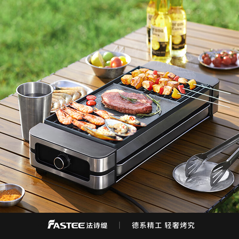法诗缇(Fastee)电烤炉烤串炉家用电烧烤炉韩式无烟不粘牛扒烤肉生蚝 2200W功率 升级铸铁网 盘网款(铸铁烤盘+烤网)价格:429.00元!