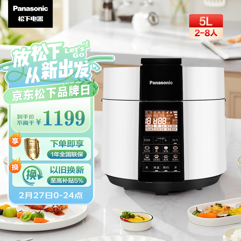 松下(Panasonic)5L智能电锅 电饭锅 1-8人 家用多功能煲无水料理大容量电饭煲 NF-PS509价格:1199.00元!
