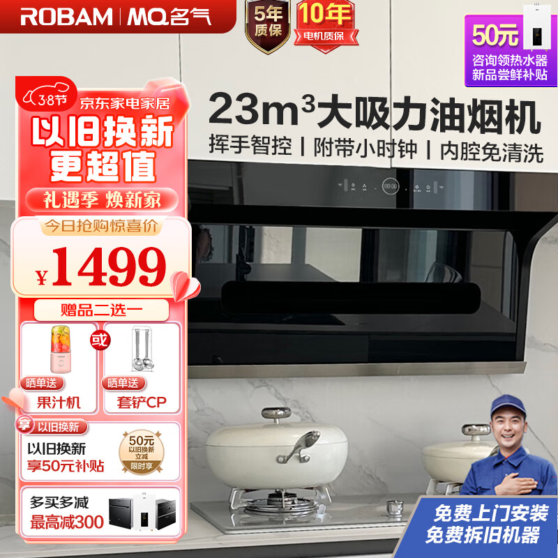 名气(MQ)老板抽油烟机顶侧双吸7字型家用油烟机23风量大吸力脱排单烟机厨房挥手智控免拆洗A5505免费安装价格:1499.00元!