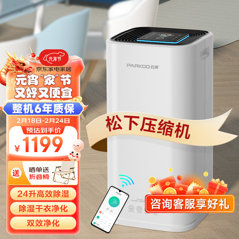 百奥(PARKOO)除湿机/抽湿机 24L大除湿量 APP手机控制 干衣净化家用地下室抽湿器别墅卧室除湿器PD253D价格:1399.00元!