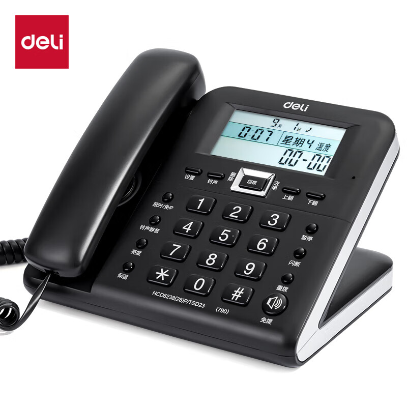 得力(deli) 电话机座机 固定电话 办公家用 38°倾角 来电显示 790黑价格:106.00元!