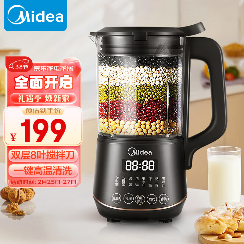美的(Midea)破壁机家用免过滤豆浆料理机可预约加热保温早餐辅食机双层防烫PB40X2-701A价格:199.00元!