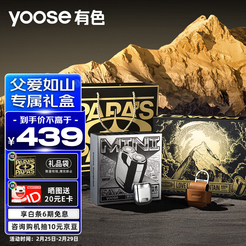 有色(yoose)男士电动剃须刀 迷你便携式刮胡刀 全身水洗 送父亲节日礼物 MINI 电镀银 父爱如山礼盒价格:519.00元!