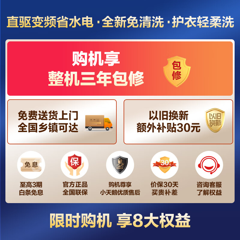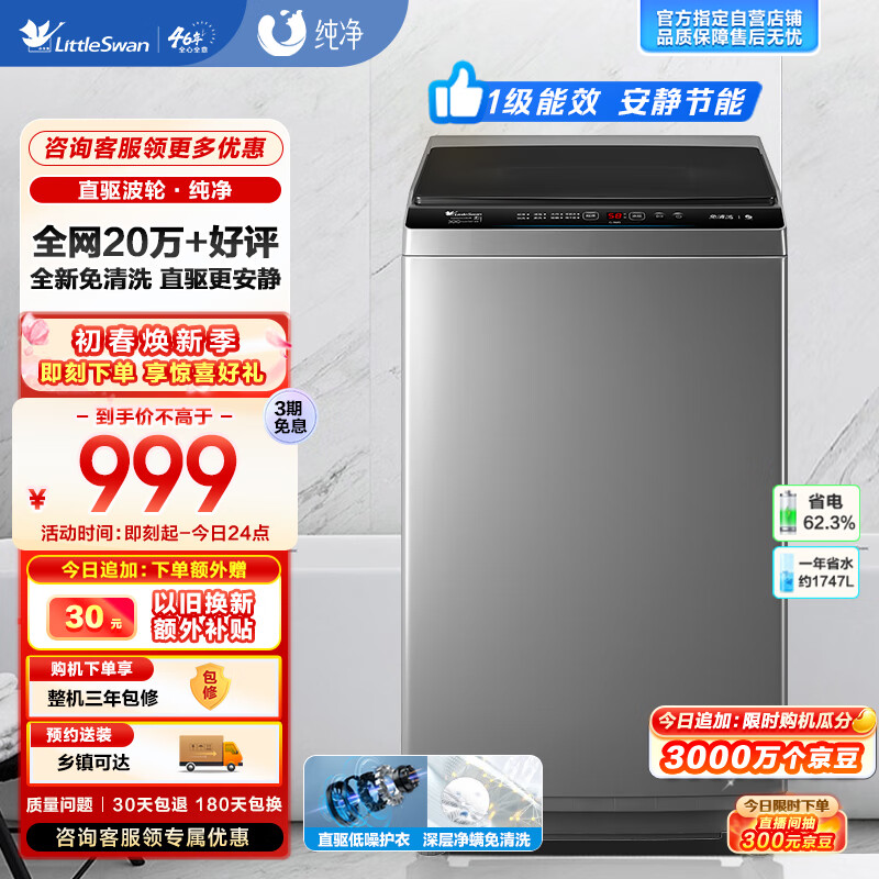 小天鹅(LittleSwan)波轮洗衣机全自动 直驱变频 8公斤大容量 免清洗不脏桶 宿舍 租房神器 以旧换新 TB80V23DB价格:979.00元!