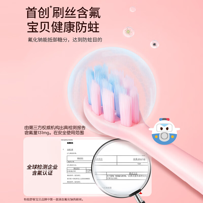 舒客【开学礼物】儿童电动牙刷声波震动含氟刷丝专业防蛀软毛护龈双重模式F2蓝(适用4-12岁)价格:229.00元!