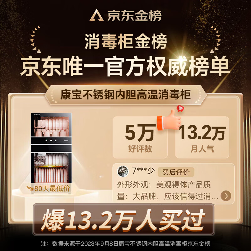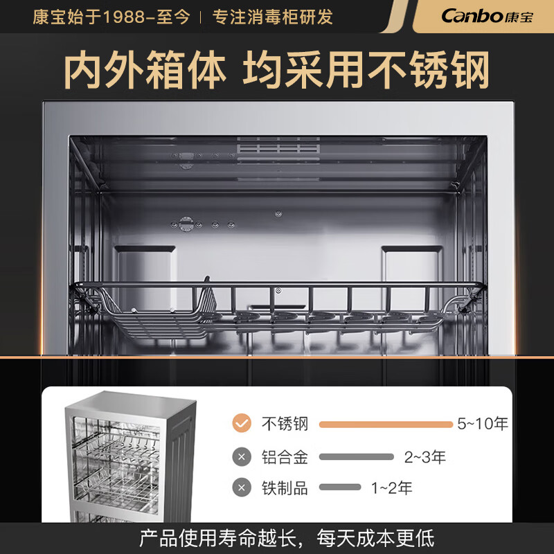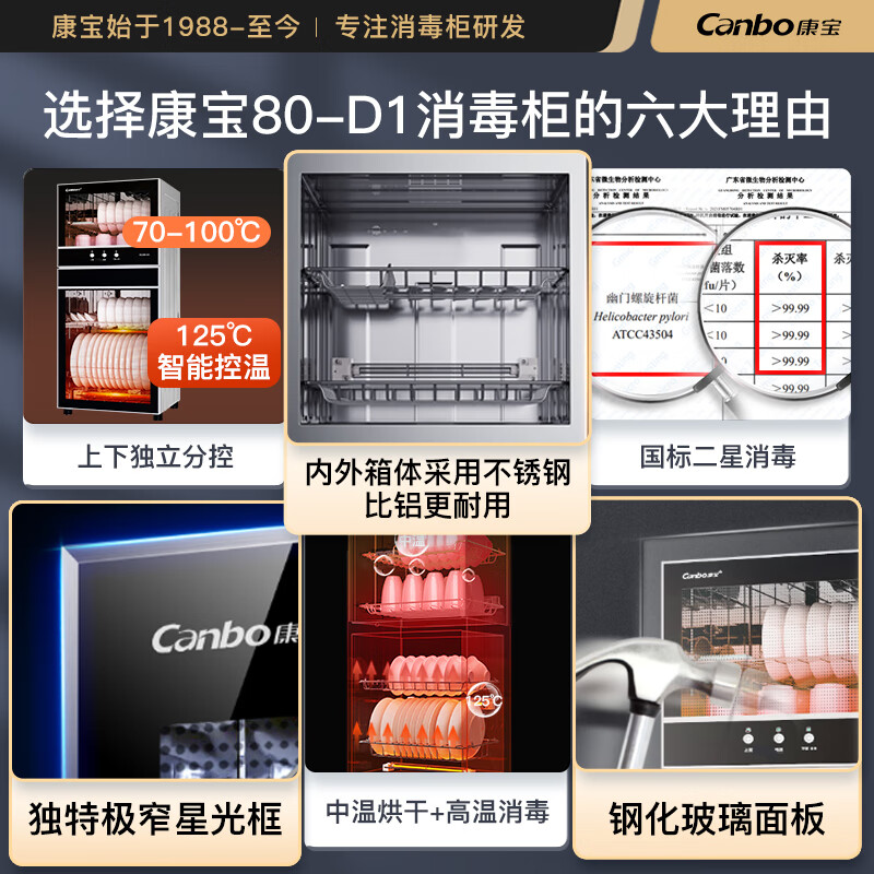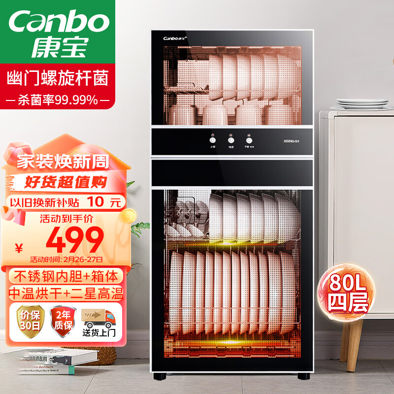 康宝(Canbo)消毒柜家用不锈钢小型立式 二星高温厨房餐具婴儿奶瓶碗筷子烘干双门80L四层收纳消毒碗柜XDZ80-D1价格:599.00元!