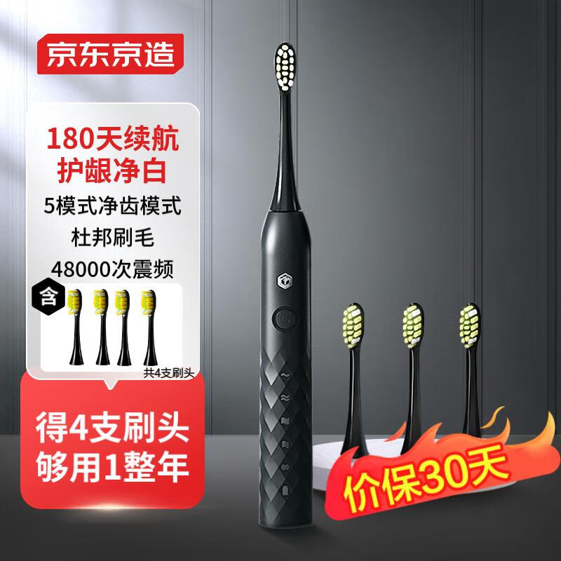京东京造 电动牙刷成人 5种洁齿模式长续航声波震动牙刷电动【带4支刷头】春节年会礼品男生生日礼物 男JZ5价格:119.00元!