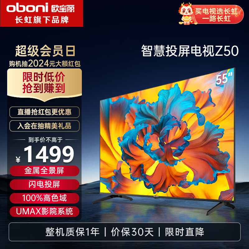 长虹欧宝丽55Z50??55英寸4K超高清 智能网络屏 手机投屏?在线观影?光学防蓝光?平板液晶LED电视机价格:1499.00元!