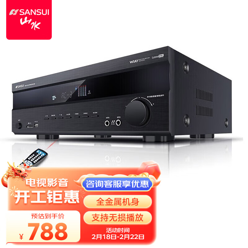 山水(SANSUI)UX66 功放机 家庭影院5.1声道AV功放机 高保真无线蓝牙家用卡拉ok功放价格:788.00元!