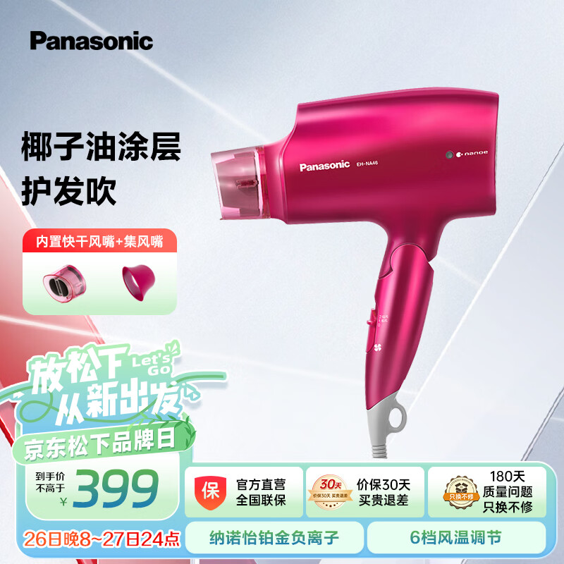 松下(Panasonic)电吹风机大功率高速大风力家用送老婆女友折叠便携纳诺怡负离子水润护发电吹风筒EH-NA46红色价格:399.00元!