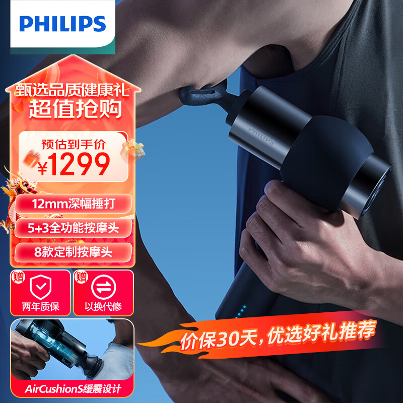 飞利浦(PHILIPS)肌肉放松按摩抢运动筋膜枪全身颈部肩部肌肉训练按摩仪运动健身捶打礼品高端中秋送礼礼物5201G价格:1299.00元!