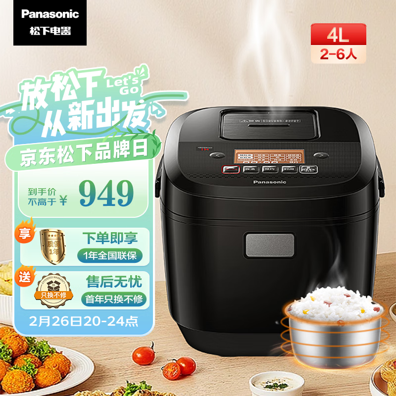 松下(Panasonic)电饭煲电饭锅4L远红外立体包裹式加热IH电磁加热1-6人可预约智能多功能电饭煲黑色 SR-HR152价格:999.00元!