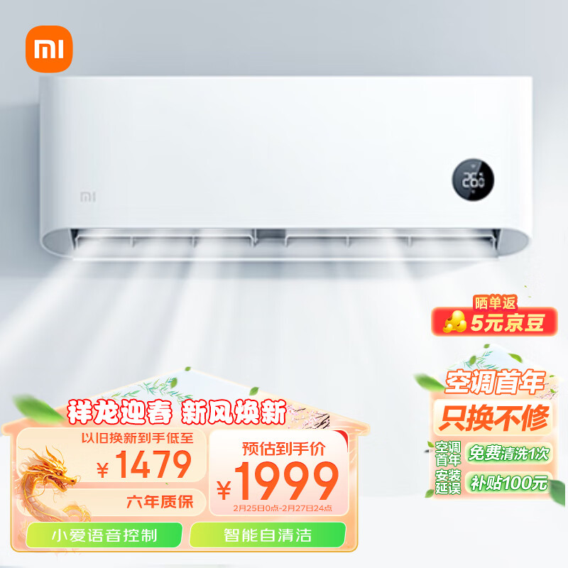 小米1.5匹 新能效 变频冷暖 智能自清洁 壁挂式卧室空调挂机 KFR-35GW/N1A3 以旧换新价格:1999.00元!