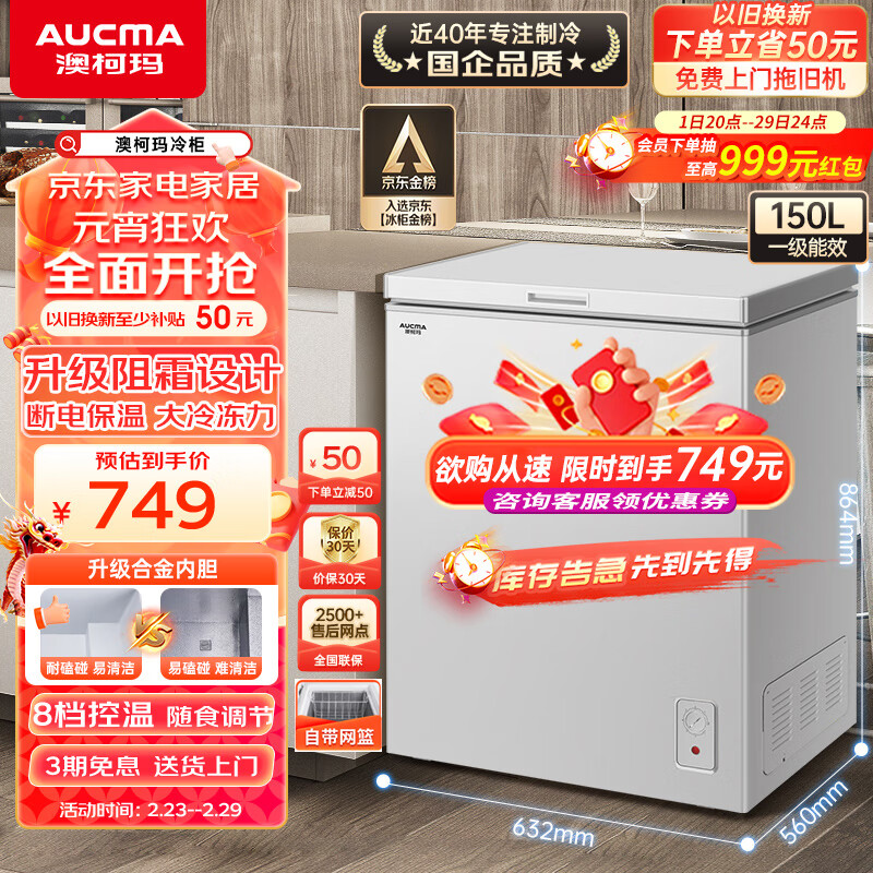 澳柯玛(AUCMA)150升家用冰柜低霜冷藏柜冷冻柜转换 母婴母乳小冰箱小型卧式冷柜 一级能效 BC/BD-150HY 以旧换新价格:799.00元!