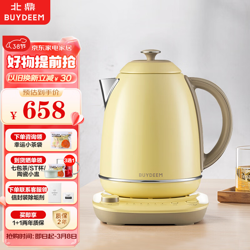 北鼎 Buydeem 炫彩304不锈钢调温电水壶 K740C小鹅黄价格:658.00元!