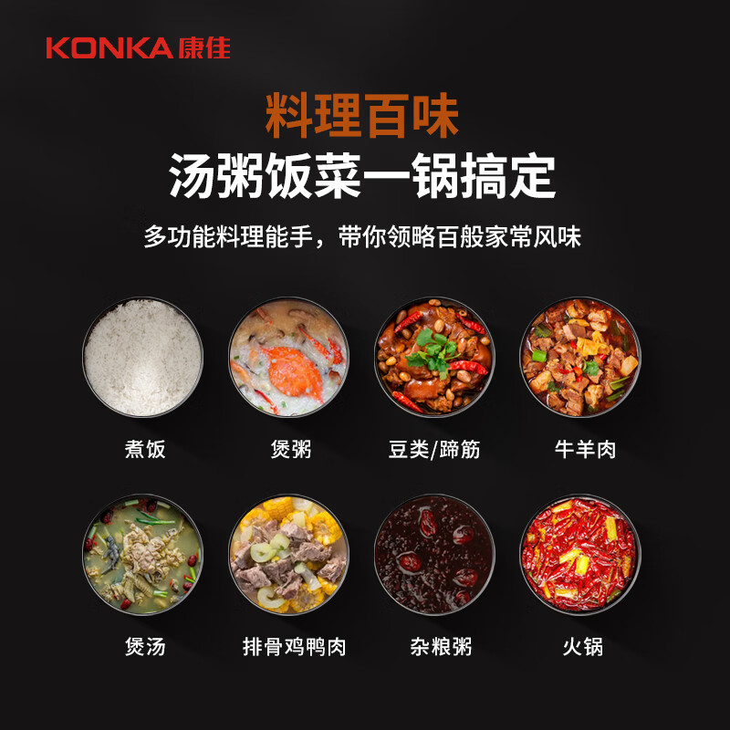 康佳(KONKA)智能电锅 5L家用多功能 不粘内胆 智能预约 收汁入味 大火力 高压锅 KYLG-5006E-W(SD)价格:199.00元!