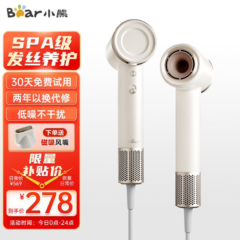 小熊(Bear)吹风机 电吹风家用 吹风筒大功率高速风力速干 低噪音亿级负离子不伤发磁吸风嘴DCF-C15W5【白】价格:569.00元!
