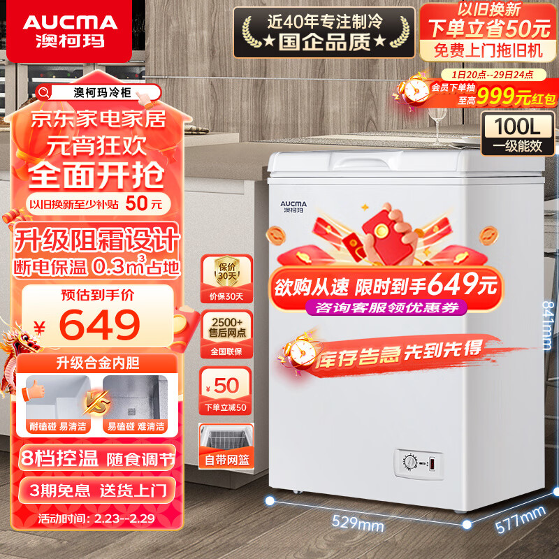 澳柯玛(AUCMA)100升家用低霜小冰柜 商用冷藏柜冷冻柜转换 母乳冰柜小型冰箱冷柜 一级能效 BC/BD-100H 以旧换新价格:699.00元!