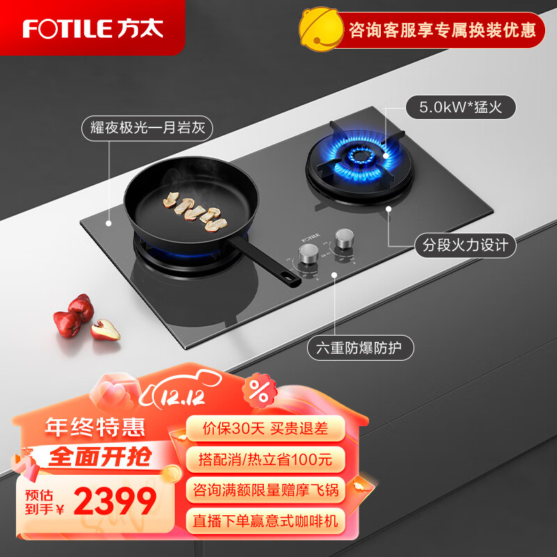 方太燃气灶(天然气)家用嵌入式燃气灶 换装灶具 5.0kW*大火力01-THF1-G 月岩灰价格:2399.00元!