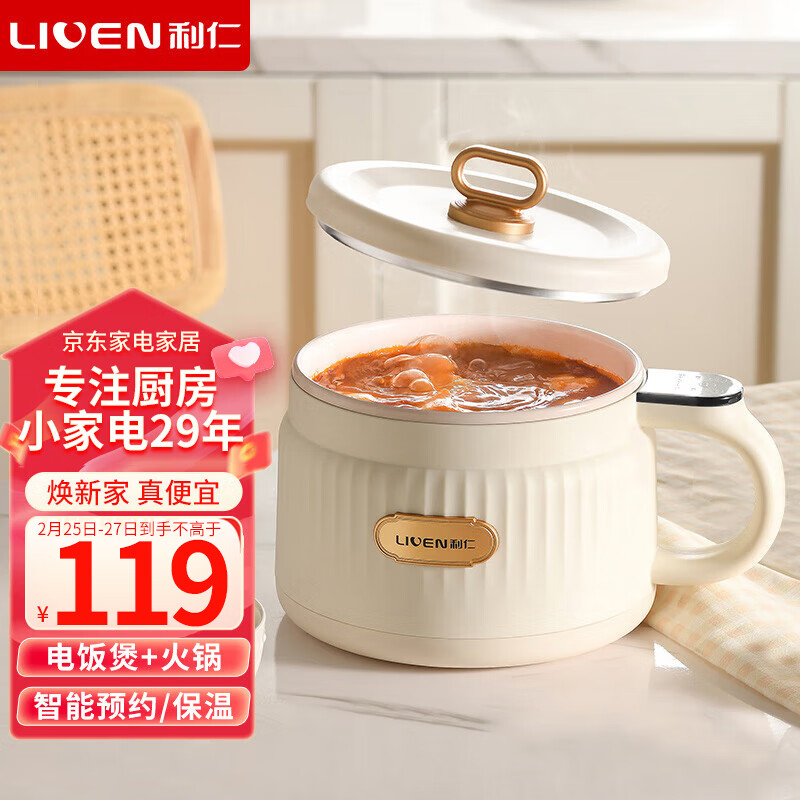 利仁(Liven)电煮锅电火锅小电锅电饭煲宿舍小锅电热锅学生宿舍煮面泡面锅多功能锅多用途锅1.8升 FB-D1880价格:119.00元!
