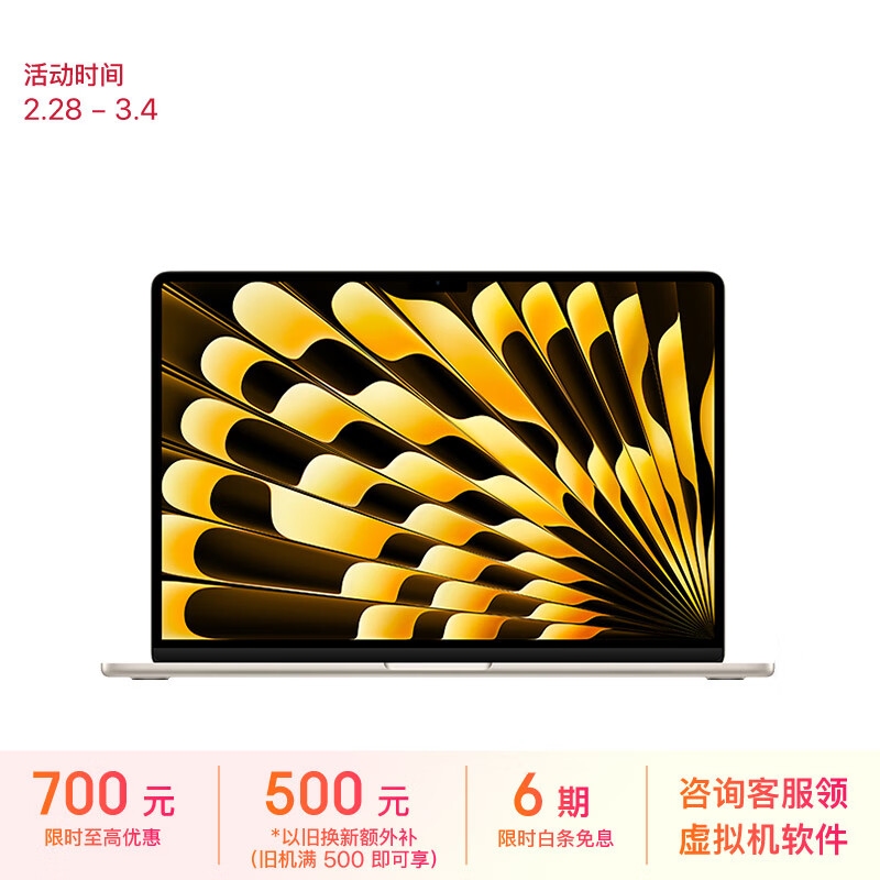 Apple/苹果2023款MacBookAir 15英寸 M2(8+10核)8G 256G星光色轻薄笔记本电脑MQKU3CH/A价格:10499.00元!