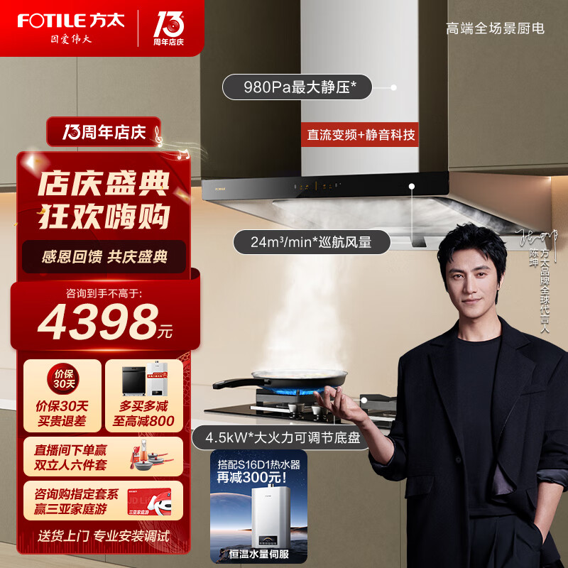 方太抽吸油烟机灶具套装 欧式顶吸排烟机燃气灶套餐 24巡航风量直流 家用烟灶EMQ6T+02-HT8BE.S天然气价格:4398.00元!
