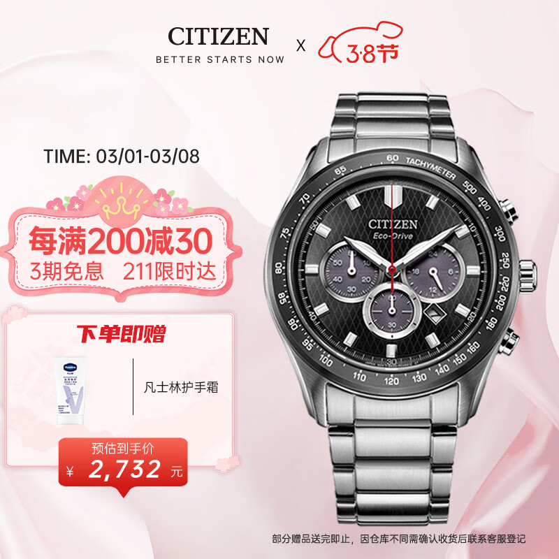 西铁城(CITIZEN)手表男日韩表光动能日期显示表盘钢带商务送礼物男友CA4454-89E价格:3042.00元!