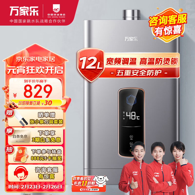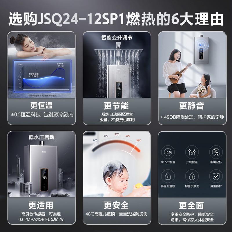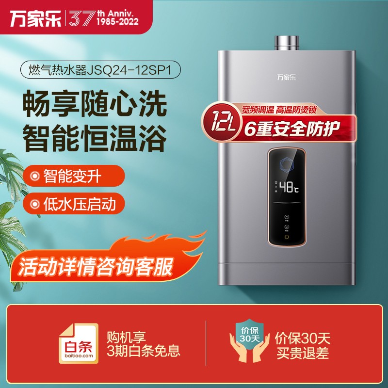 万家乐 12升燃气热水器(液化气) 智能变升 双重净浴 低水压启动 高温儿童防烫锁JSQ24-12SP1价格:829.00元!