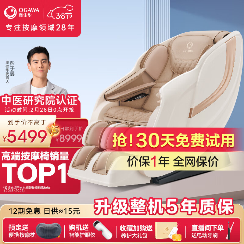 奥佳华(OGAWA)按摩椅家用太空舱全身零重力电动智能按摩沙发椅小型小巧3D机芯中医推拿小户型豪华头等舱7508Neo 【90%顾客选择】落日暖杏价格:8999.00元!