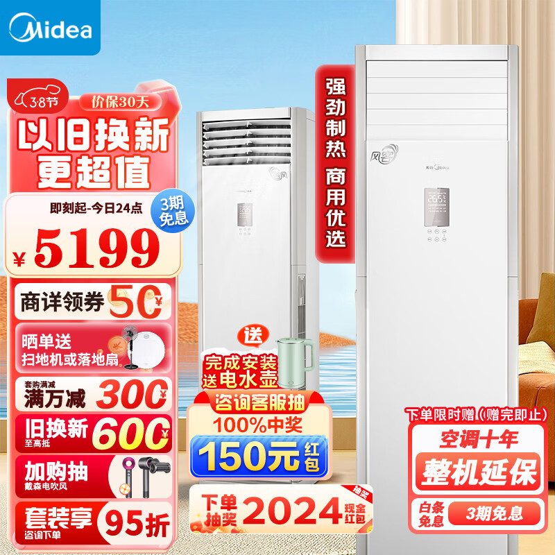 美的(Midea)空调柜机3匹 新能效变频冷暖两用 客厅企业立式大出风口空调 智能家电 以旧换新 风客MFB3价格:5199.00元!