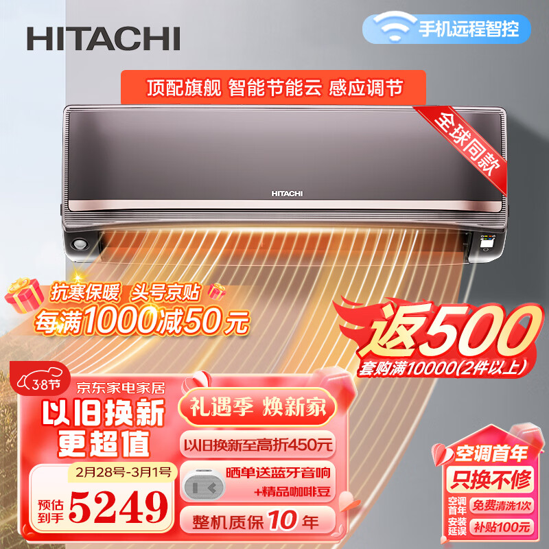 日立(HITACHI)白熊君新1级能效 1匹变频冷暖壁挂式空调智能wifi健康除菌智感睡眠 以旧换新 RAK/C-SH09PHAPC价格:5499.00元!