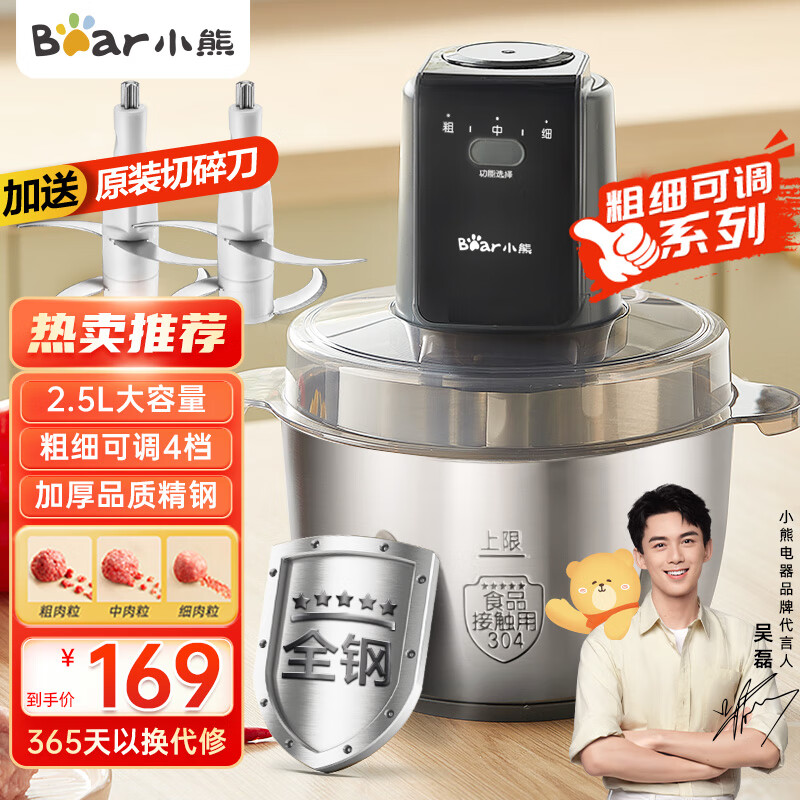 小熊(Bear)绞肉机家用 绞馅机 碎肉机 电动多功能全钢搅拌打肉机 肉馅蒜蓉机 大容量粗细可调QSJ-C04X8 2.5L价格:169.00元!