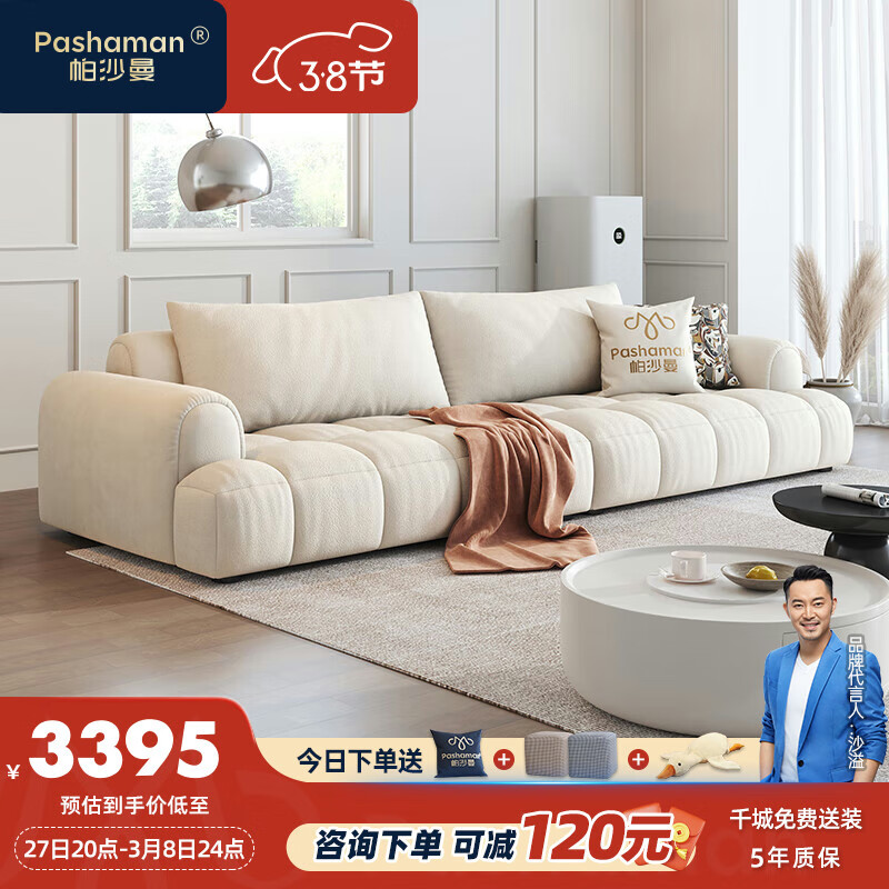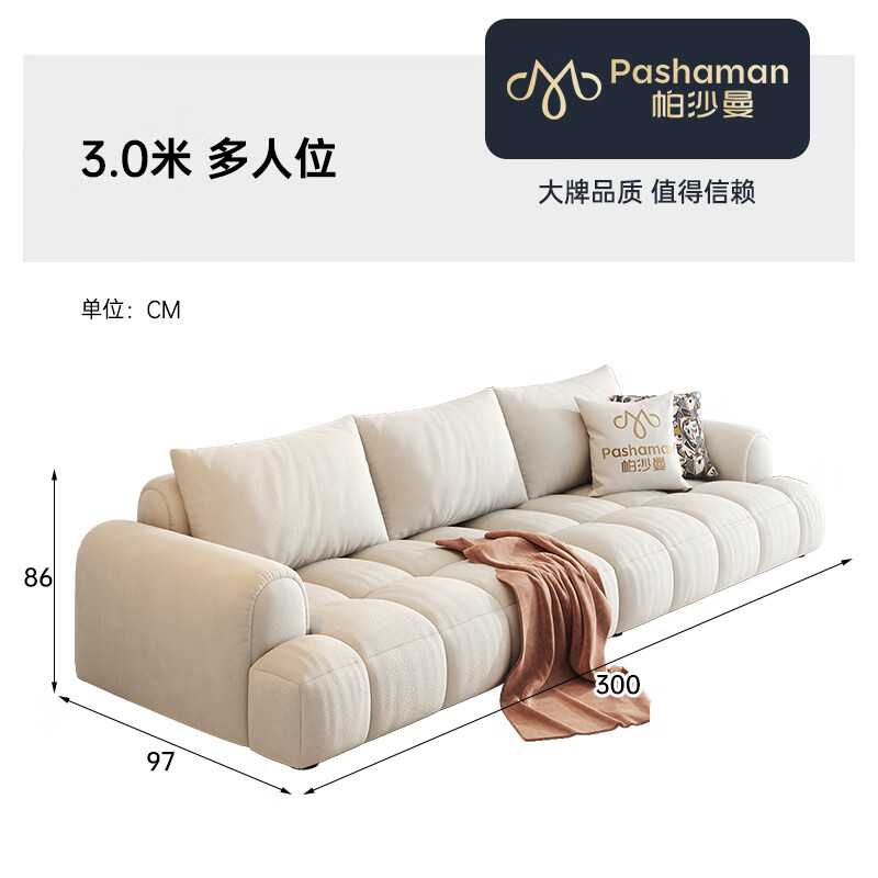 帕沙曼(pashaman)布艺沙发 泡芙棉花糖猫抓奶油风棉麻沙发钢琴键ins 3.0米 1005FZ价格:3515.00元!