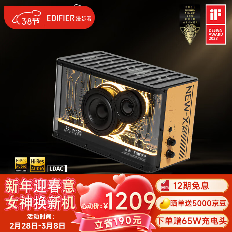 漫步者(EDIFIER)NEW-X PRO 光冷能量音箱 蓝牙电脑音响 电竞游戏桌面音响 潮流氛围灯 黄色 三八妇女节礼物价格:1209.00元!