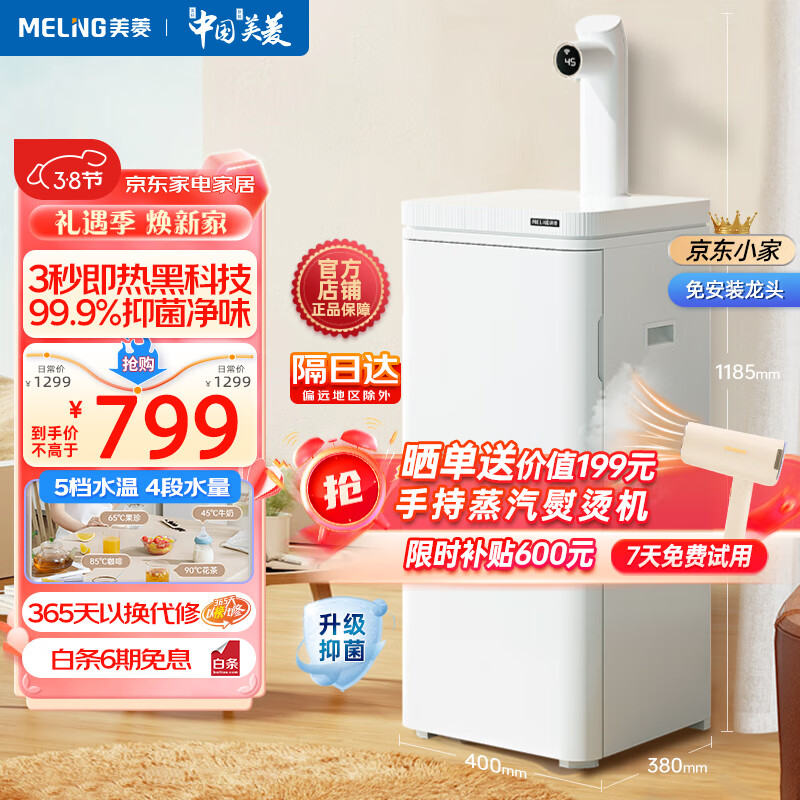 美菱(MeiLing)即热式茶吧机家用高端饮水机3秒即热下置式客厅办公室烧水一体机 AJ15京东小家智能款优雅天鹅白价格:799.00元!