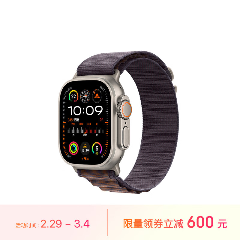 Apple/苹果 Watch Ultra2 智能手表GPS + 蜂窝款49毫米钛金属表壳靛蓝色高山回环式表带小号MRFE3CH/A价格:6499.00元!