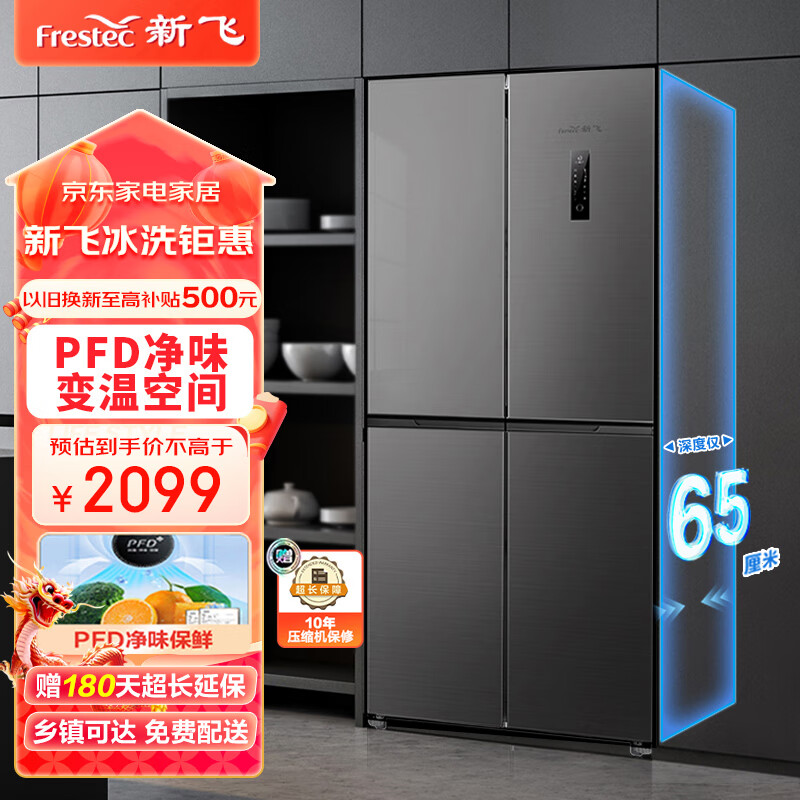 新飞(Frestec)442升超薄可嵌入十字四门风冷无霜变频一级电脑控温大容量存储净味冰箱 BCD-442WK8DT价格:2149.00元!