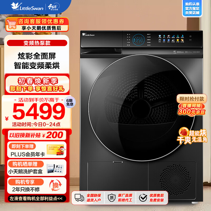小天鹅(LittleSwan) 烘干机 热泵式 干衣机家用 紫外线除菌 BLDC变频电机 10公斤 京东小家 TH100VH89WT价格:5499.00元!