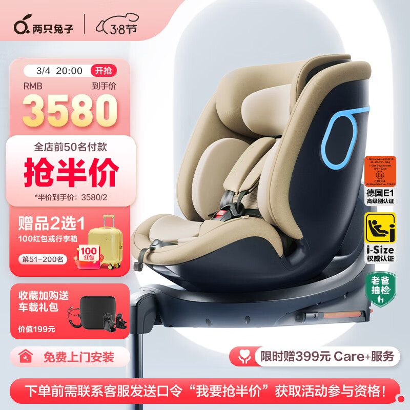 两只兔子求知2pro智能通风车载婴儿童座椅0-4-12岁宝宝汽车用 星暮金价格:4880.00元!