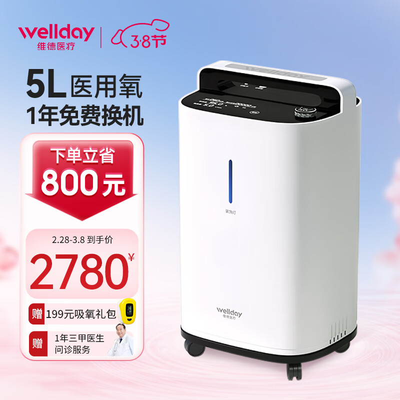 维德(WELLDAY)5L升医用制氧机家用老人吸氧机氧气呼吸机雾化一体机孕妇氧疗呼吸高原便携式氧气机ZY-5VW价格:3680.00元!