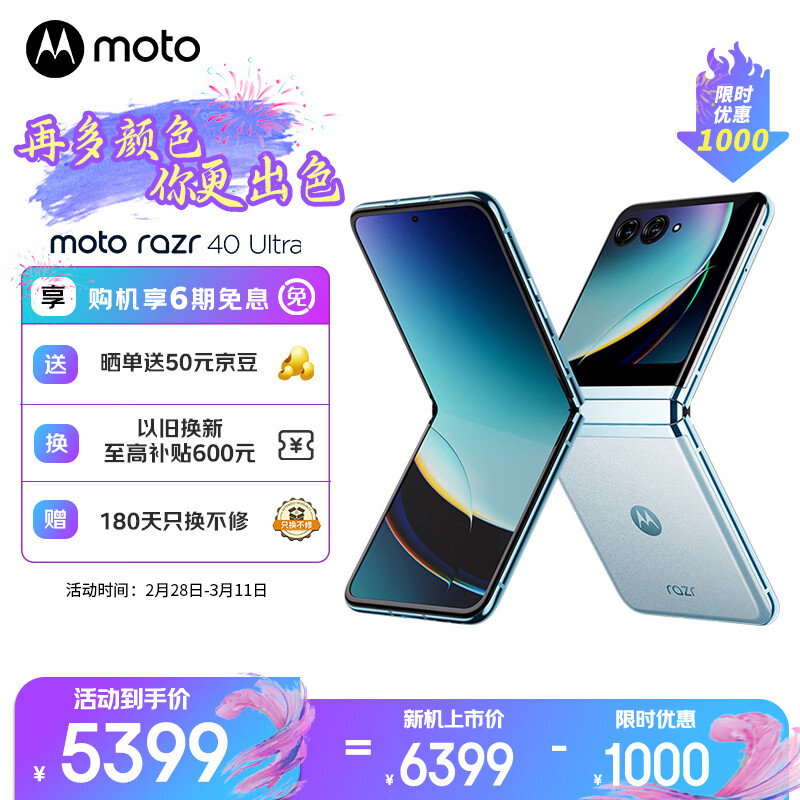 摩托罗拉 moto razr 40 Ultra 掌心巨幕 外屏海量应用 骁龙8+ 5G折叠屏旗舰手机 12GB+512GB 冰晶蓝价格:5699.00元!