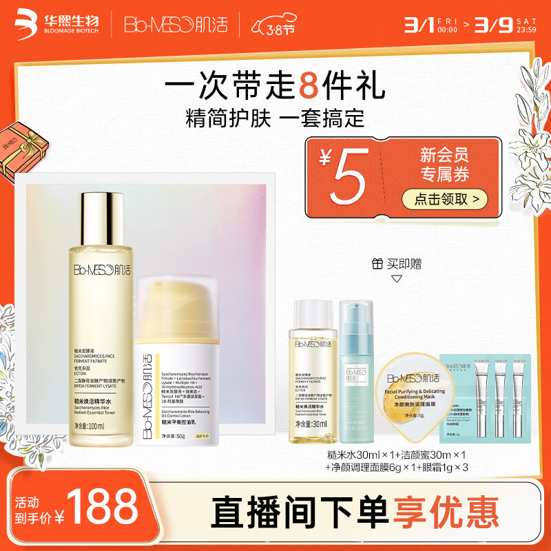 肌活(Bio-MESO)糙米水乳护肤套装礼盒(水100ml+乳50g)补水生日礼物送女友价格:218.00元!