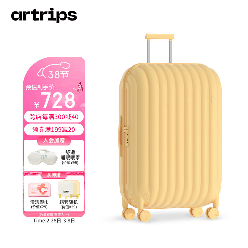 artrips行李箱男女拉杆箱28英寸大容量旅行箱面包款万向轮皮箱子 乳酪黄价格:878.00元!