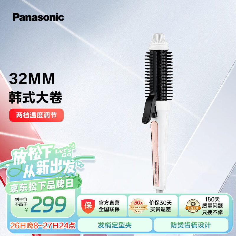 松下卷发棒 卷发器两用 32MM两档调节卷发梳直发夹板美发烫发棒刘海短发电动梳子礼物EH-HT40-W496价格:299.00元!
