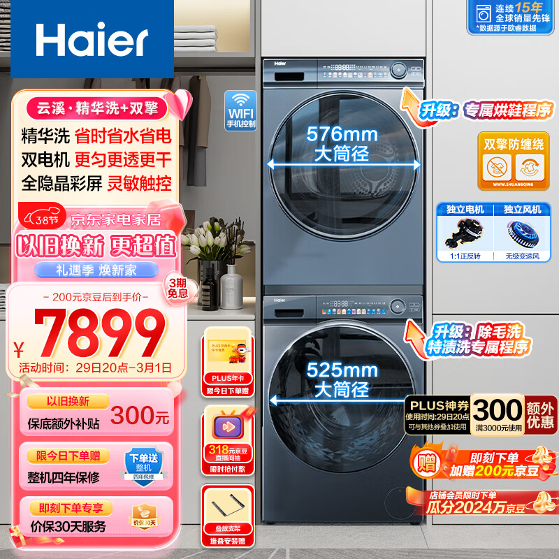 海尔(Haier)纤美SL6洗烘套装 10Kg精华洗滚筒洗衣机全自动+双擎热泵烘干机家用 1.1洗净比 SL6+81组合价格:8099.00元!