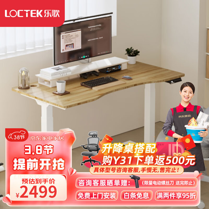 乐歌电动升降桌电脑桌双电机站立办公家用写字书桌 E3/1.4m竹板套装价格:2499.00元!