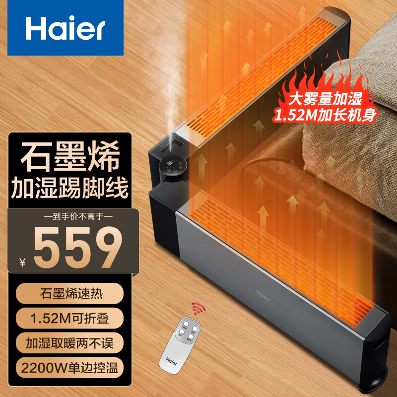 海尔(Haier)取暖器踢脚线石墨烯加湿电暖器家用节能省电折叠加热器移动地暖烤火炉HNK-S2237S价格:759.00元!