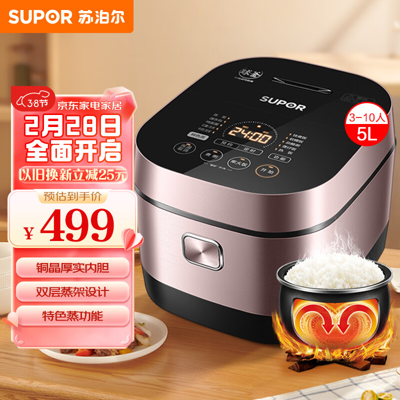 苏泊尔(SUPOR)电饭煲Pro电饭锅5LIH电磁加热精铁球釜3-10人双蒸架童锁家用智能电饭煲50HC750价格:499.00元!